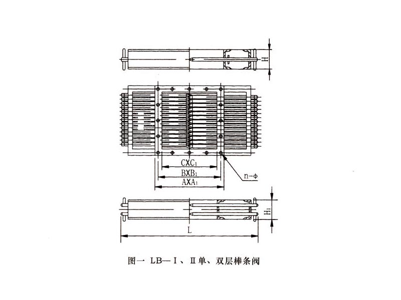 该闸阀主要由框架、棒条组成,当棒条插入框架上,则一组棒条组就组成一平行栅板,将块状物料阻挡在闸门一侧,若抽出一条则栅板出现一条较大的空隙,物料就可以从该空隙进入闸门的另一侧,抽出棒条的多少应由工艺流程的需要来决定。